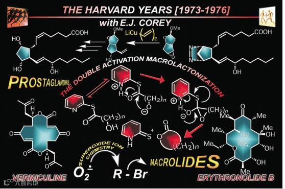 1973年至1976年,K. C. Nicolaou教授来到哈佛大学师从E. J. Corey教授作博士后。期间主要工作是前列腺素和大环内酯合成研究,还开发了用于构建大环内酯的Corey-Nicolaou反应即通过形成硫酯来活化羧基端进而构建大环内酯。