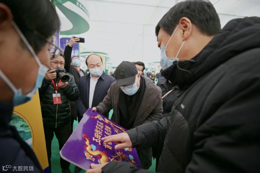 △ 图:河北省人民政府副省长时清霜(右一)巡展,与农本咨询首席专家贾枭交流“玉田供京蔬菜”品牌创意