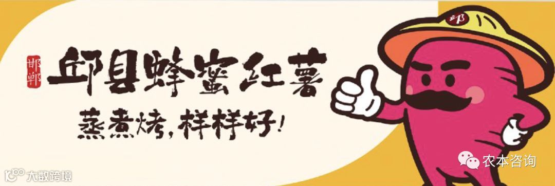农本咨询创意“邱县蜂蜜红薯”,从品类上把邱县红薯与其它红薯区别开来,吸引消费者关注;以“蜂蜜”为类比充分表现邱县红薯甜润的特质,用名称传递产品价值,降低营销成本。“邱县蜂蜜红薯,蒸煮烤样样好”的价值主张,立足消费者视角,从烹饪角度入手,传达邱县红薯又好吃又方便做的价值特性,打消消费者顾虑;同时还可作为经销商强有力的销售话术,为口碑传播提供统一品牌说辞。