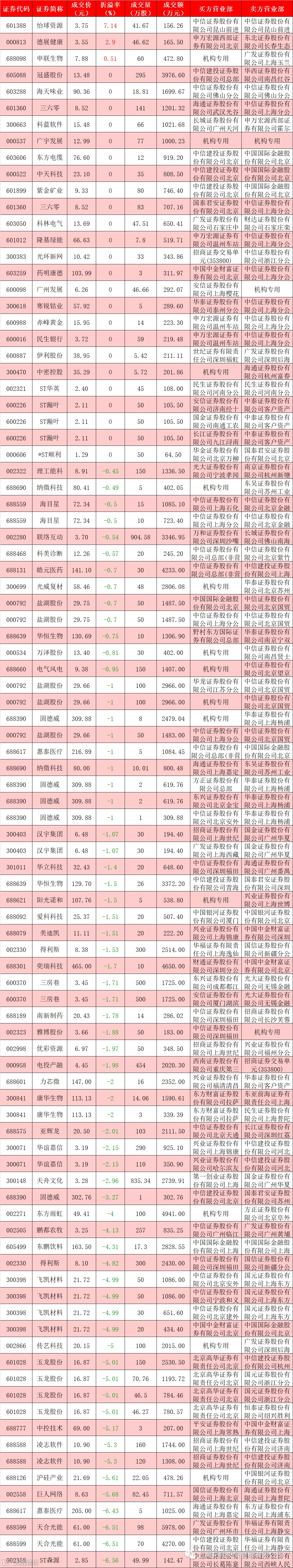 I 每日大宗交易数据统计