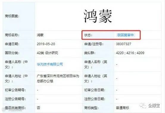 然而相关资料显示,华为2019年申请的“鸿蒙”相关商标出现了商标驳回或商标无效等情况,这是因为华为的鸿蒙商标早就被人注册了。2010年12月,北京海岸鸿蒙标准物质技术有限责任公司申请了“鸿蒙CRM"商标,申请类别为1类化学原料、42类设计研究中的网站服务。2011年9月,河北鸿蒙广告发展有限公司也申请了“鸿蒙商标”,商标申请类别为计算机及软件、云计算、软件开发与维护等。华为在此时注册鸿蒙商标,自然会被国家知识产权局拒绝该商标申请。华为日前将国家知识产权局告上了法庭,但2021年5月12号一审判决:华为败诉。