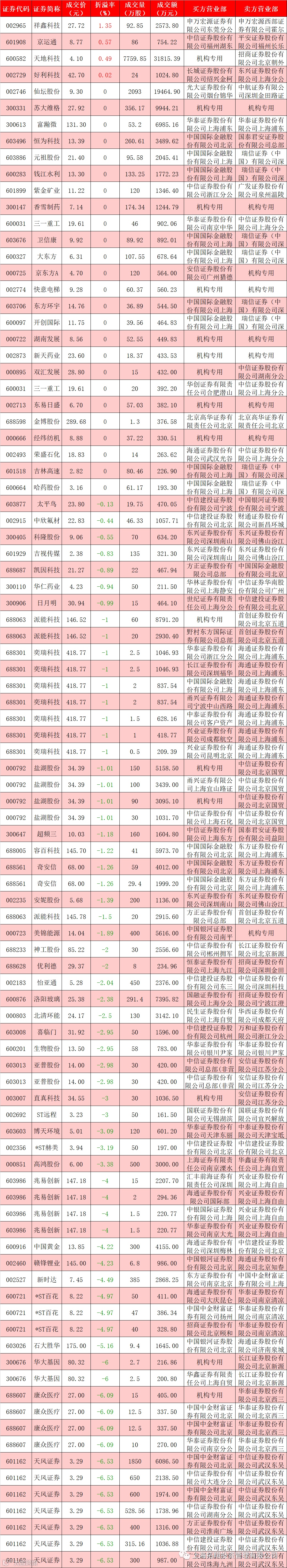 I 每日大宗交易数据统计