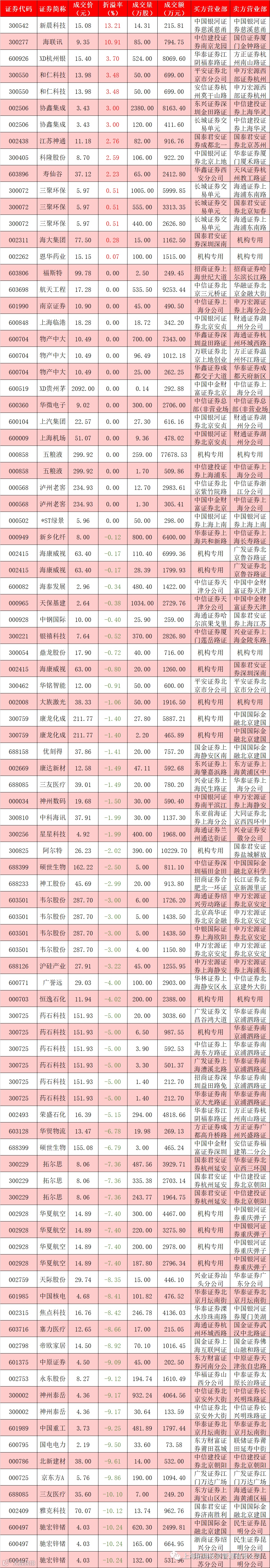 I 每日大宗交易数据统计
