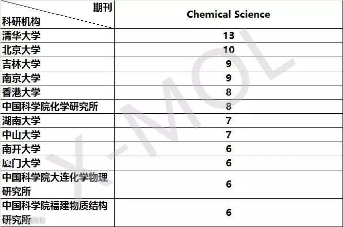 以下就是每种刊物发表文章数排在前十名的中国科研机构,全部发文高校院所的名单在X-MOL的网页版,可以通过点击下方“阅读原文”进入。