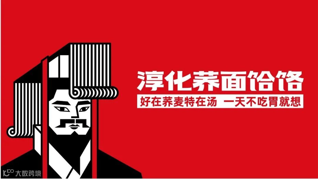 餐饮店最大的广告是门头。一家门店要在街道上脱颖而出,必须有一个醒目的符号,让顾客远远地看见,就能识别门店。对于区域公用品牌符号创意,农本认为,要到地域文脉和产品文化中去挖掘。最终,农本选择让“汉武大帝”为淳化荞面饸饹代言。历史上,汉武帝曾经75次到甘泉宫避暑,汉武帝是淳化文脉中最宝贵的资产之一;而淳化荞面饸饹的流行也与汉武帝和钩弋夫人的爱情故事息息相关。农本团队特意将汉武帝的冕旒设计成荞麦面的形状,私有化“汉武大帝”这一公共资产,成为淳化荞面饸饹品牌的专属符号。