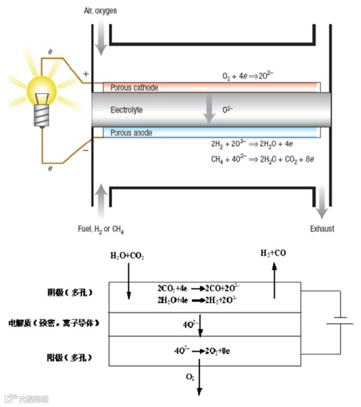 固体氧化物电池(Solid oxide cells,SOCs)的高效能应用可以分为两种形式,一种是SOFC,即固体氧化物燃料电池,通过氧化燃料产生电能;另一种是SOEC,即固体氧化物电解池,通过电解水产生氧气和氢气。从原理上讲,SOEC可以看作是目前研究较多的SOFC的逆过程。两种应用具有能量转换率高、燃料可选范围广等优点,被认为是一种很有发展前途的可逆电池。SOC的核心技术就是多孔电极和电解质的制备,对于电极,能制备出具有耐久性、催化活性高、并且合成方法简单价格低廉的材料,一直是研究者们追求的目标。