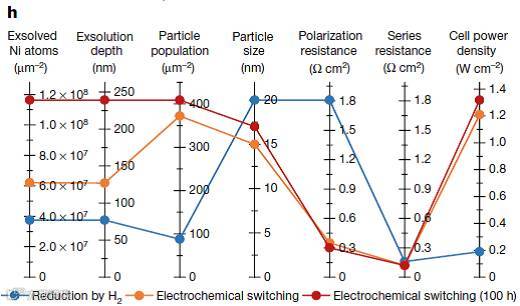 这一方法,可以在氧化物电极上简单快速产生高催化活性的纳米结构材料,所需时间仅以秒计,而且这种电极结构在SOFC和SOEC模式下均表现良好,这为在一个高性能、易制造的器件中整合SOFC和SOEC提供了概念验证。