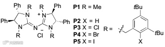 一些有机碱如LiHMDS、LDA、LiTMP由于其强碱性和弱的亲核性在有机反应中被广泛使用,但是其在有机溶剂中的良好溶解性使其不适合用于不对称相转移催化。2012年日本东北大学的Yoshinori Kondo教授等人报道了原位方法制备酰胺鎓盐1。最近新加坡南洋理工大学的Choon-Hong Tan教授受到该工作的启发,设想了一个Brønsted潜在碱(probase)策略(Figure 2)。通过硅酰胺和氟化物的反应产生弱亲核性的手性有机强碱,从而大大降低了背景反应和副反应。这个策略特别适用于对强碱敏感的不对称相转移反应。(Pentanidium- and Bisguanidinium-Catalyzed Enantioselective Alkylations Using Silylamide as Brønsted Probase. J. Am. Chem. Soc., 2016, 138, 9935-9940, DOI: 10.1021/jacs.6b05053)