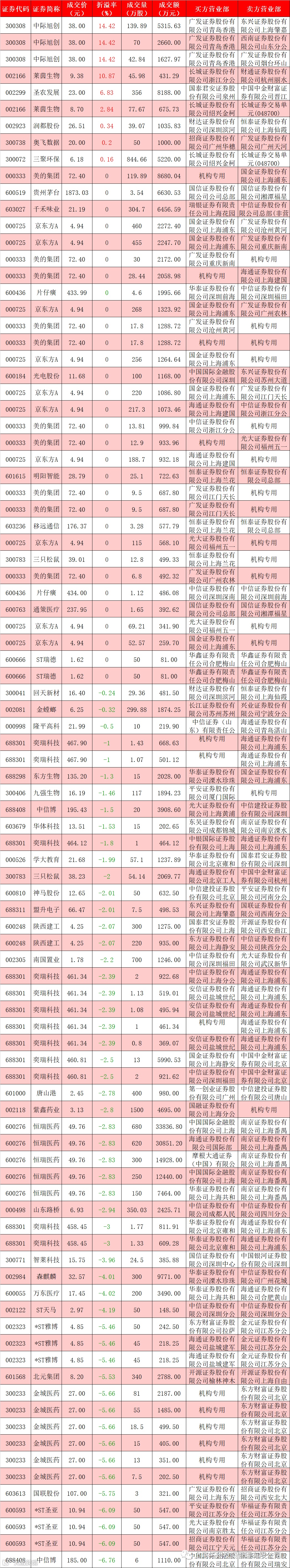 I 每日大宗交易数据统计