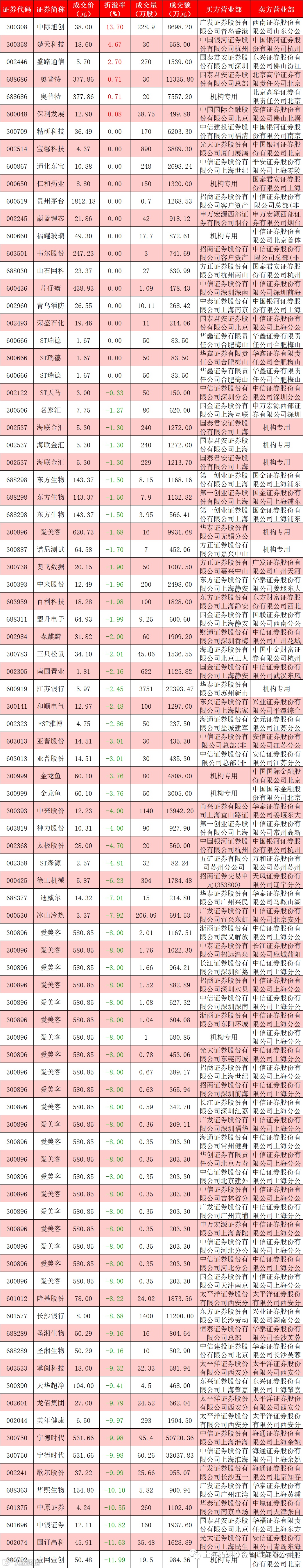 I 每日大宗交易数据统计