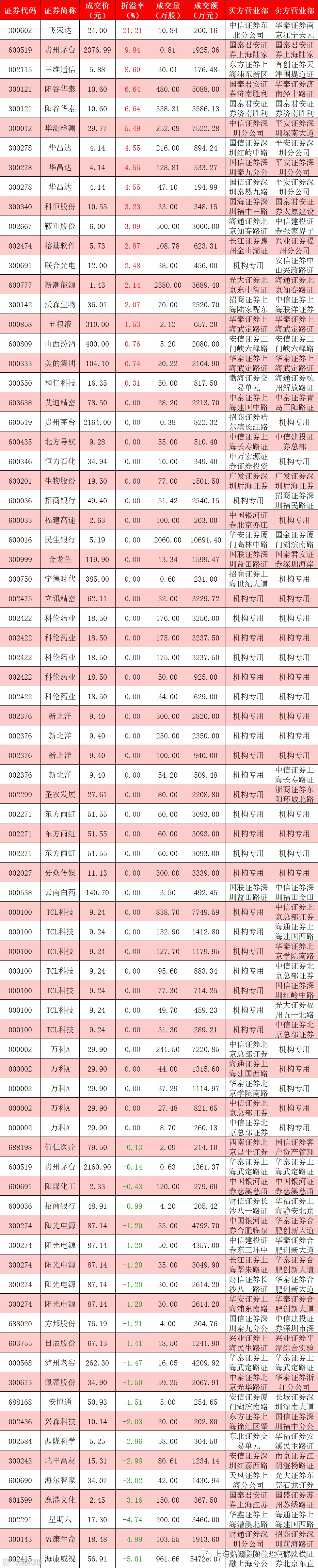 I 每日大宗交易数据统计
