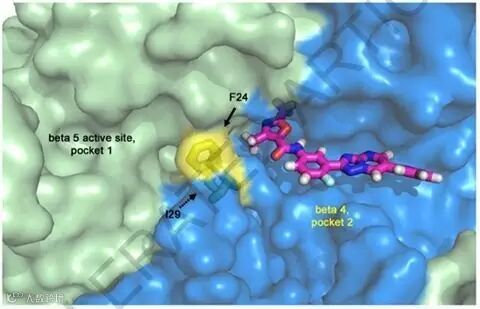 图 9. GNF6702结合蛋白酶体β4亚基示意图。图片来源:Nature