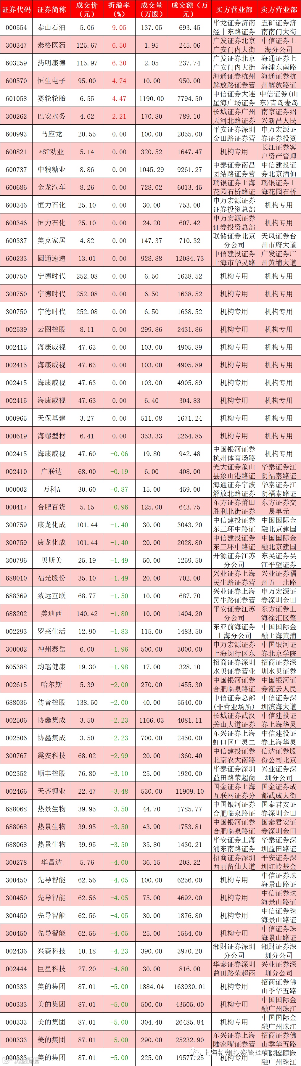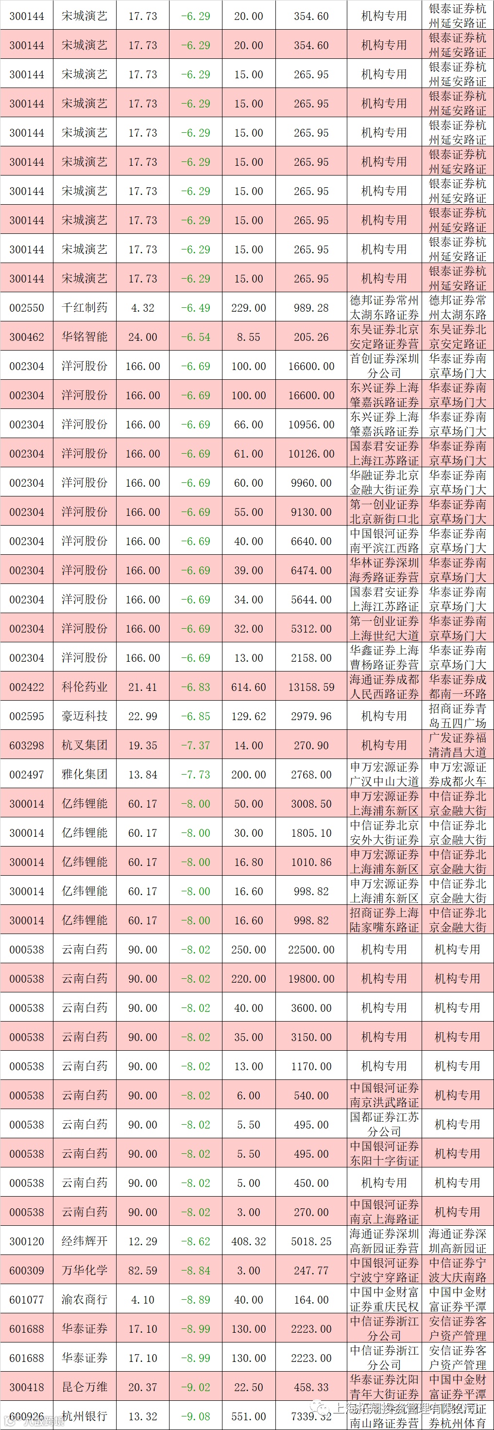 据统计:今日沪深两市产生191笔股票大宗交易,总交易股票数88支,合计成交金额98.21亿元。