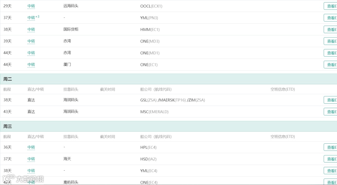不同航线停靠的码头可能不同,船期、靠泊码头、ETD、价格等信息都可以在QShipping查询到。