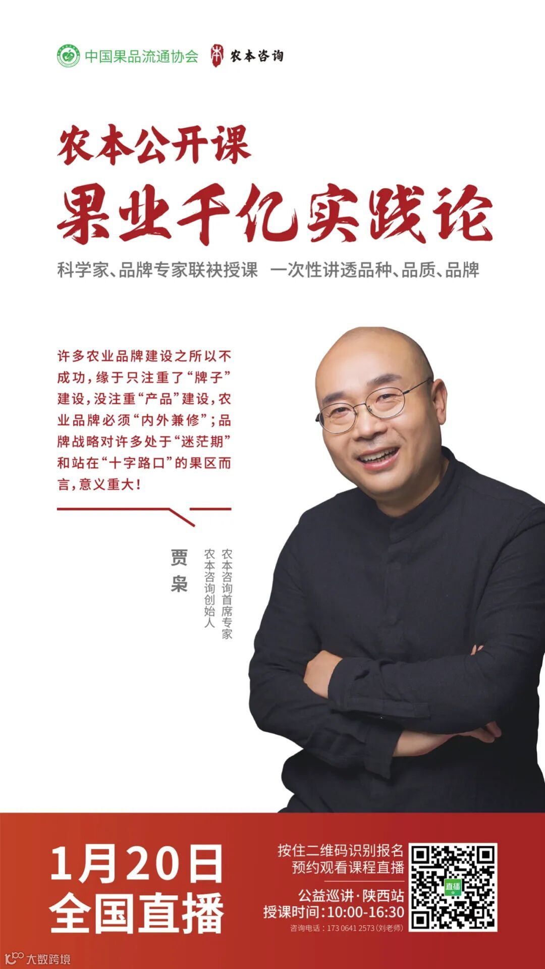 中国果业2021开年大课——农本公开课“果业千亿实践论”,由中国果品流通协会、农本咨询联合主办,特邀科学家和品牌专家联袂授课,一次性讲透品种、品质、品牌!