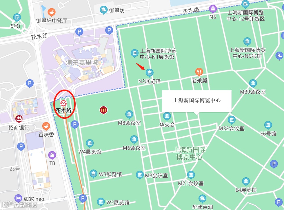 交通:乘上海地铁2号线至龙阳路站下,步行至展馆;乘地铁7号线至花木路站下,步行至展馆2号北入口大厅。
