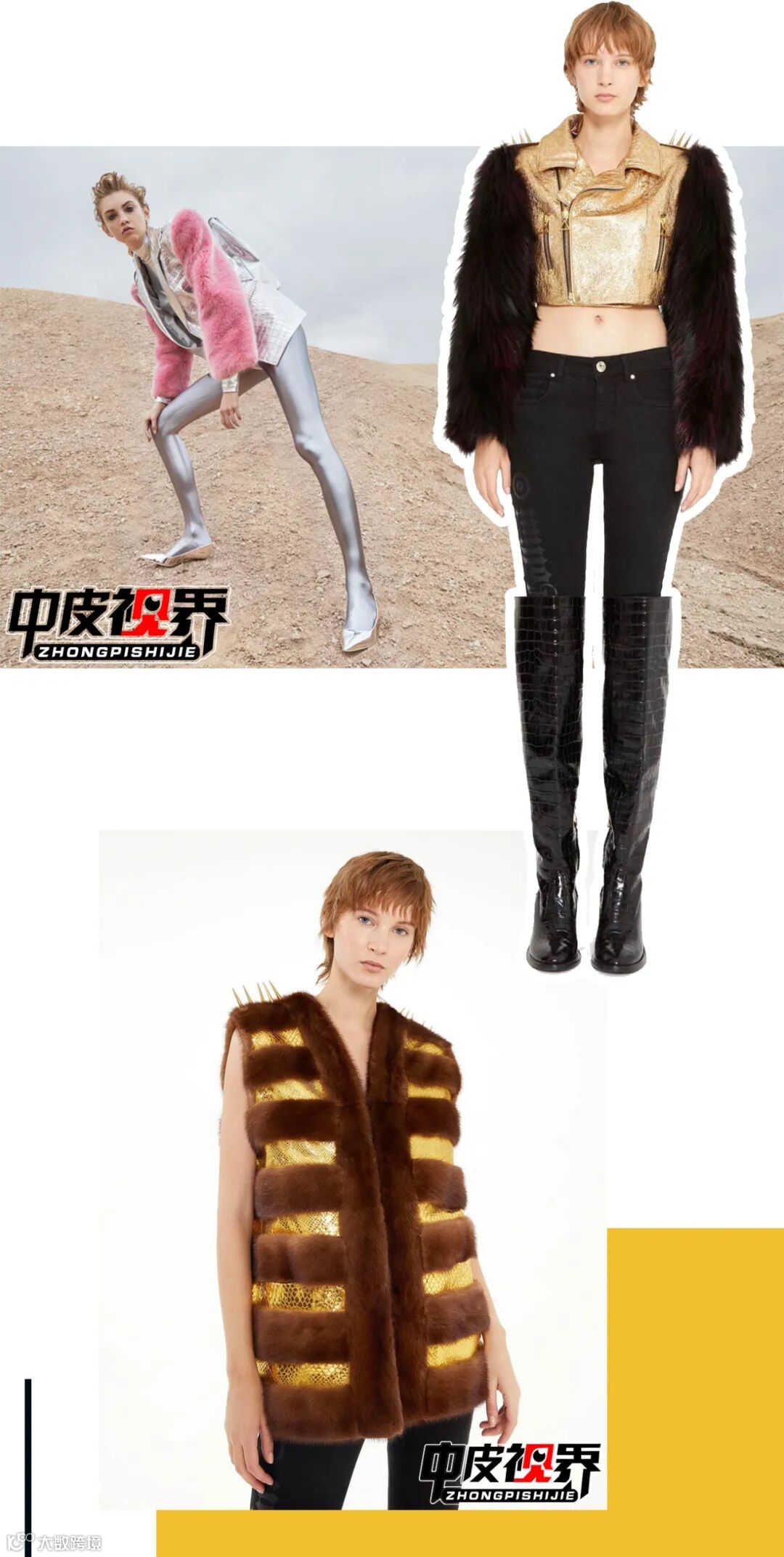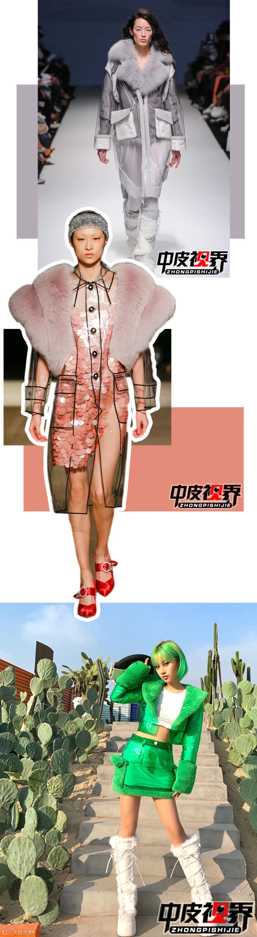 设计师们运用拼接手法将PVC材料与皮草面料结合