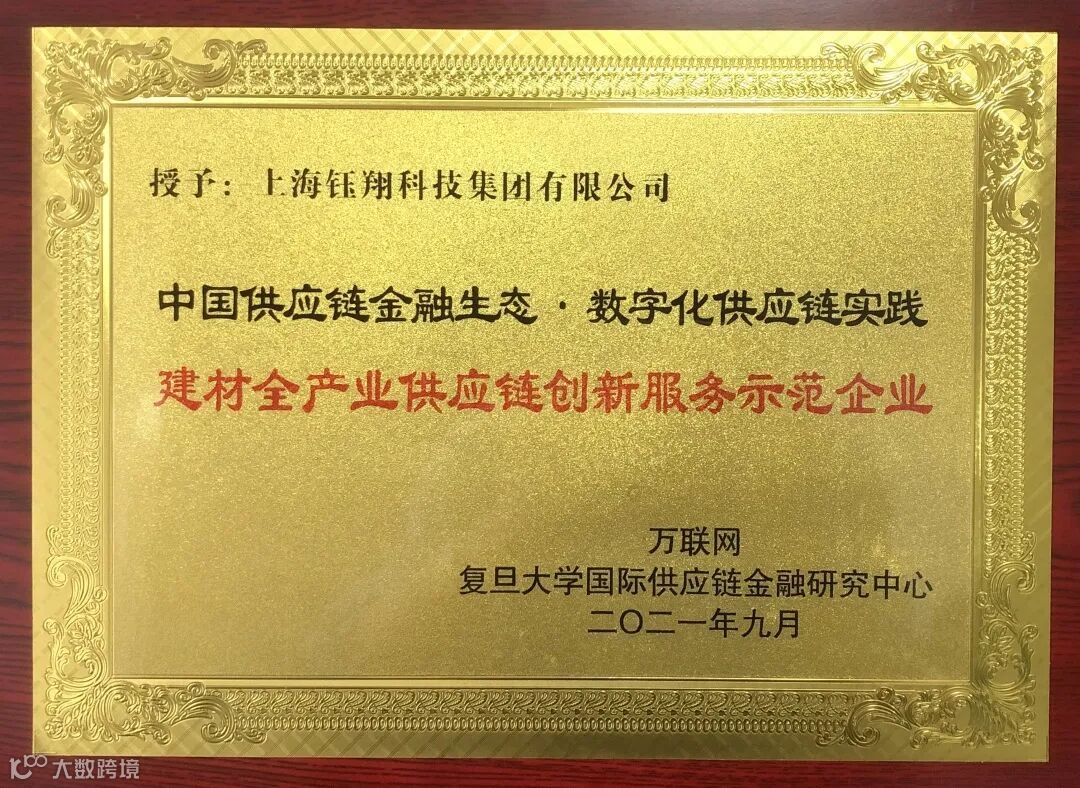 在此背景下,万联供应链金融研究院联合复旦大学国际供应链金融研究中心发起了以“数字化供应链金融”为主题的“第五届中国供应链金融生态优秀企业评选”,希望遴选行业标杆,推动中国供应链金融健康发展。历时3个月,经过三轮筛选,从战略定位、供应链协同度、产品/用户服务的数字化程度、人员与资金的投入、科技与业务的匹配度、转型升级协同机制健全度、敏捷度、发展成熟度等8大维度进行考量,选出39家优秀企业,上海钰翔科技集团有限公司凭借产业模式创新、数字科技创新,打造了数字化业务前端平台系统——“智慧钰翔供应链管理平台”,全流程应用AI人工智能、电子签章、GPS/北斗双模定位、区块链等前沿技术,创造性地解决建材行业存在的问题,将数据触角延伸至每笔订单,将建材供应链上中下游和金融机构无缝链接起来,打造交易真实、信息透明、物流闭环、资金闭环、数据交叉验证、不可篡改、诚信度最高的供应链管理平台,荣获“数字化供应链·建材全产业供应链创新服务示范企业”。