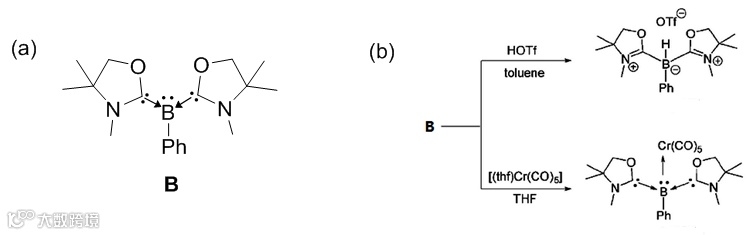 Figure 4. (a) 小位阻的路易斯碱性的三配位硼B, (b) B的反应活性(部分图片来自Angew)