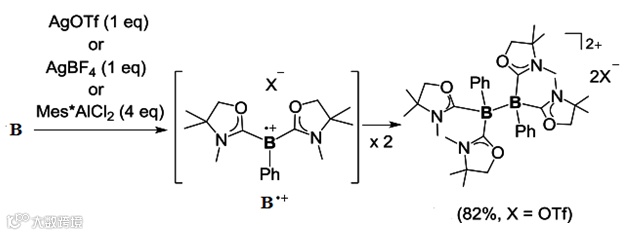 最新的研究表明(Figure 5, J. Am. Chem. Soc., 2016, DOI: 10.1021/jacs.6b04858),化合物B还可以被氧化,生成相应的不稳定阳离子自由基,随后发生二聚来构建罕见的Bsp3-Bsp3键。