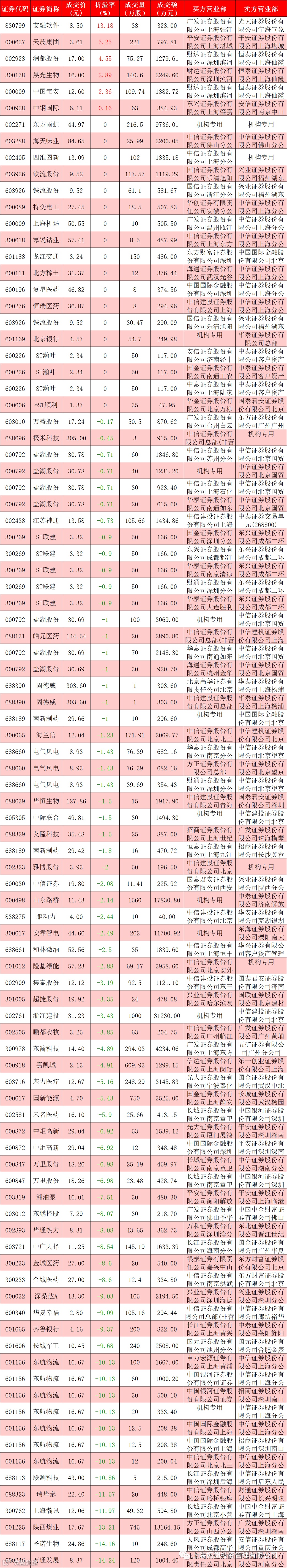 I 每日大宗交易数据统计