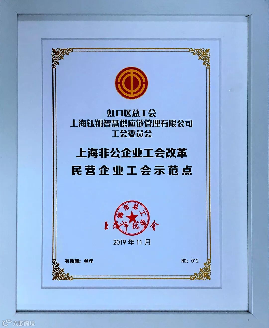 12月24日,上海市总工会召开上海推进非公企业工会改革工作现场会,上海市一批“小二级”工会示范点、民营企业工会示范点作为推广先锋队在会上受到了表彰,上海钰翔智慧供应链管理有限公司工会被授予“上海非公企业工会改革民营企业工会示范点”。