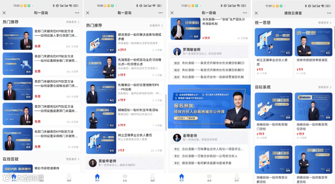 线上场景包装精准对接需求。导师介绍突出“实战派”标签,将每位导师的企业辅导经历、成功案例数据可视化呈现;课程包装按“企业痛点”分类,如“初创企业股权设计”“成熟企业绩效突围”,每门课程均以“问题引入—方案拆解—案例复盘”结构呈现,搭配“客户业绩增长见证”短视频,让专业价值直观可感。