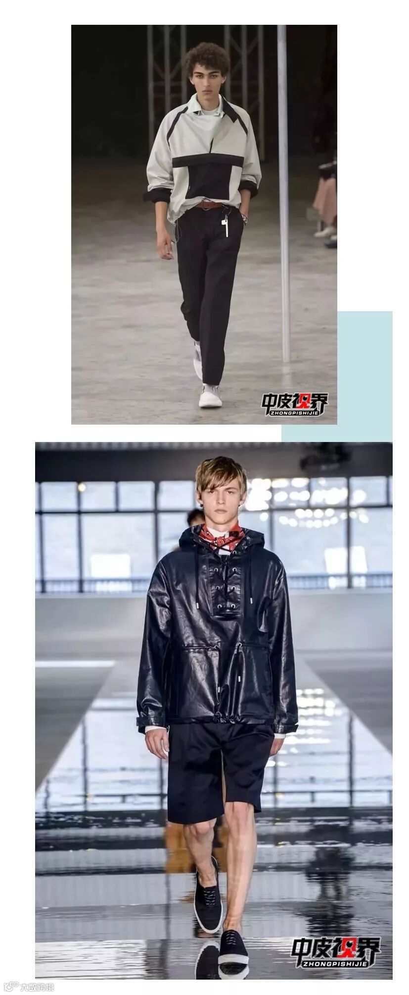运动风仍然是主流,色块拼接及宽松廓形为男装皮衣注入新意和现代气息。