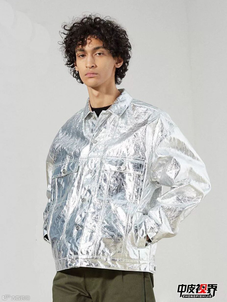 金属色面料表面隐约闪烁着金属光泽,并且随着光源的变化而变化,穿上之后有非常好的反亮效果,在阳光下更为耀眼夺目。