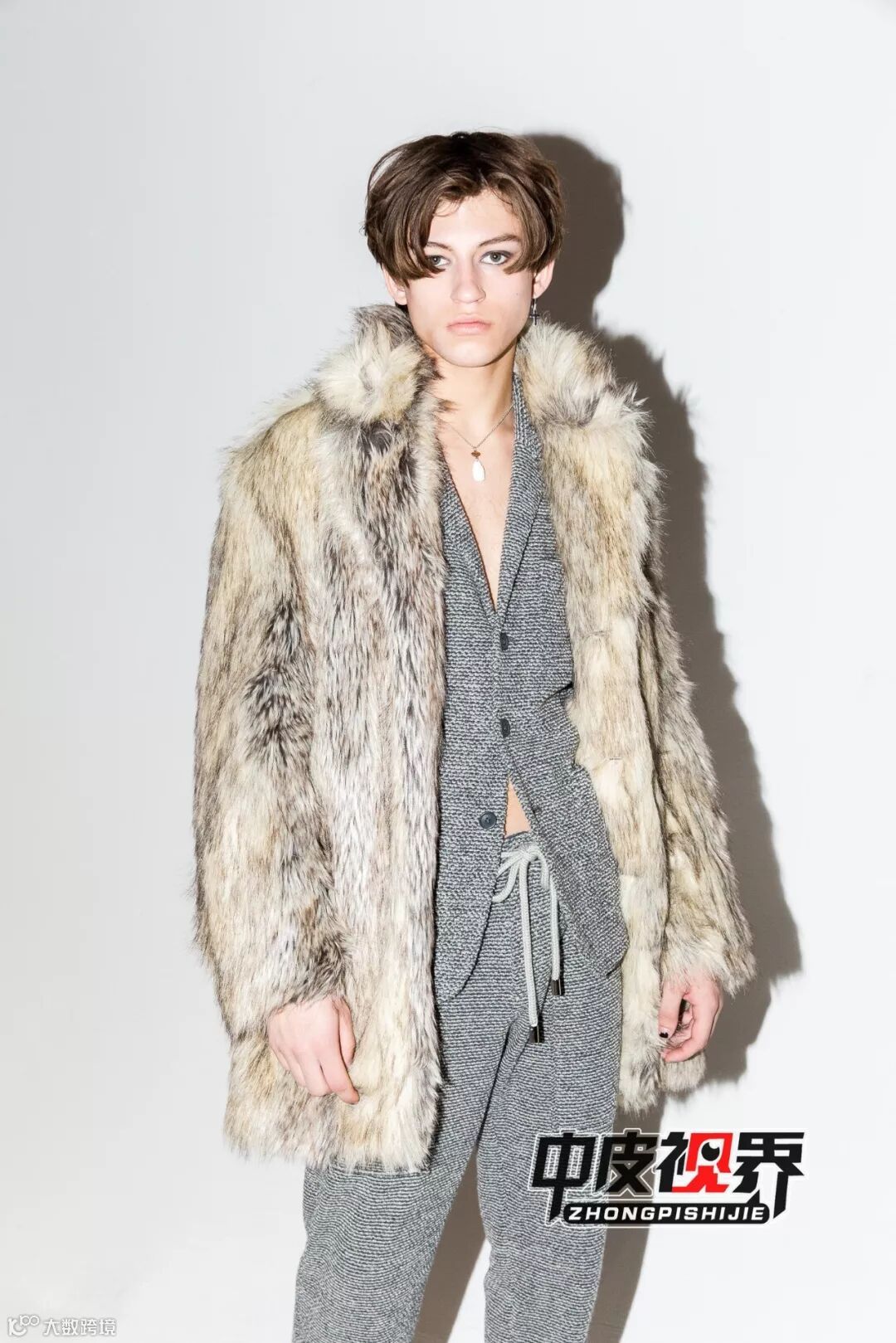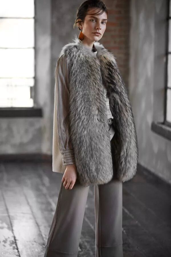 西装的严肃与皮草的野性相结合