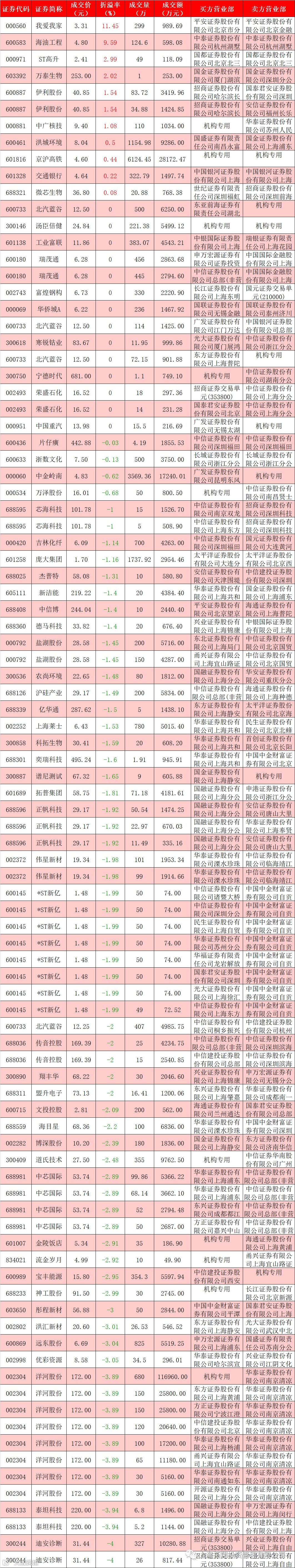 I 每日大宗交易数据统计