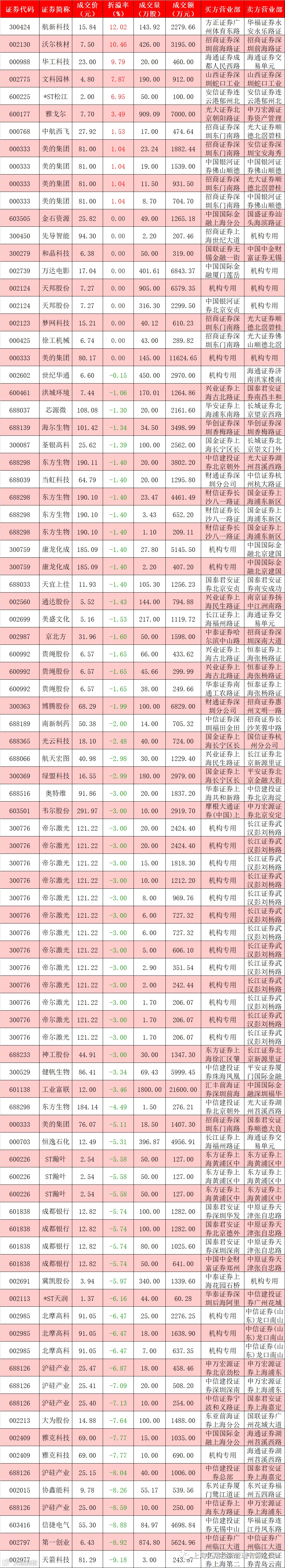 I 每日大宗交易数据统计