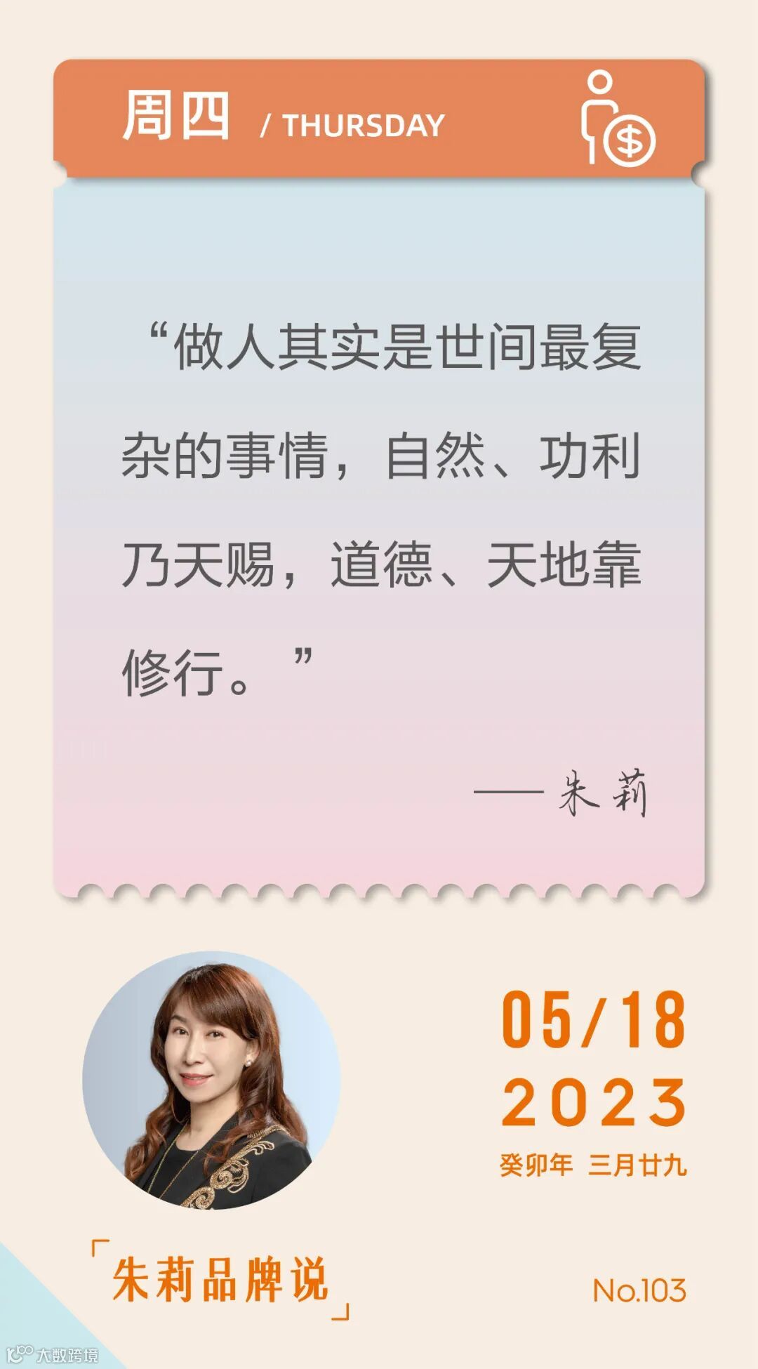 导读:朱莉品牌说以品牌哲学和实学的思维,对品牌战略、企业战略、形象设计、市场营销、企业文化、人生成长等方面独有的经典见解,影响企业家用道思维与术方法结合,践行正念,正行,正果的经营之道。