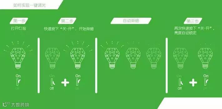 再快速按动两次开关,光线就会从最亮逐渐变暗,直到合适的光线强度,相同操作即可将亮度锁定。