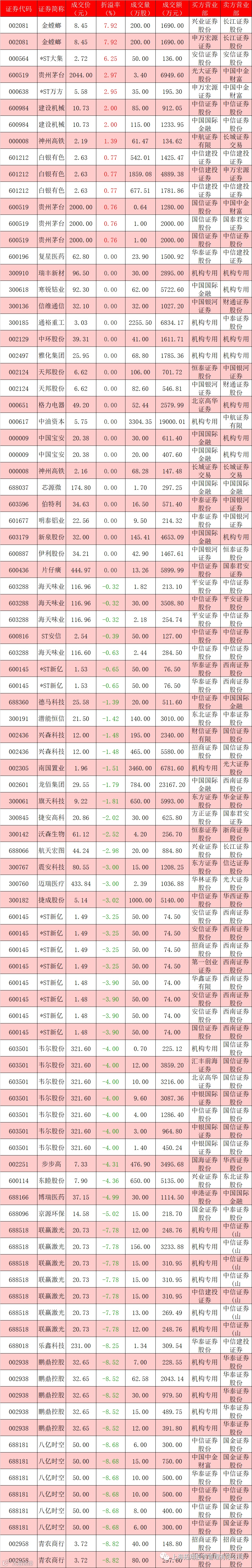 I 每日大宗交易数据统计