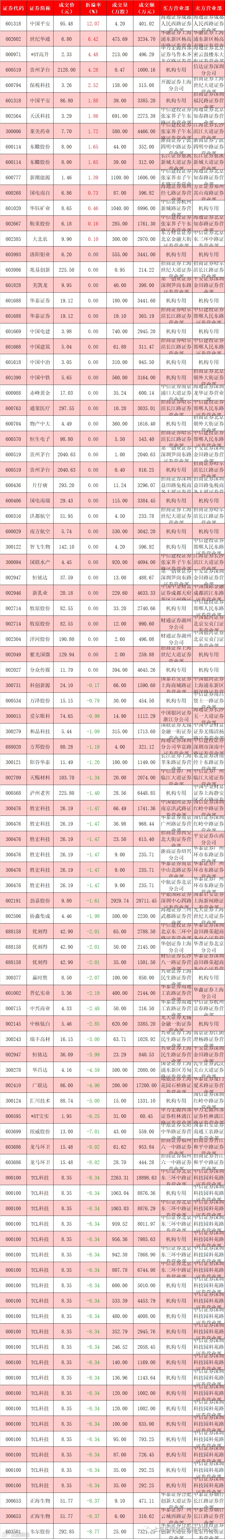 I 每日大宗交易数据统计