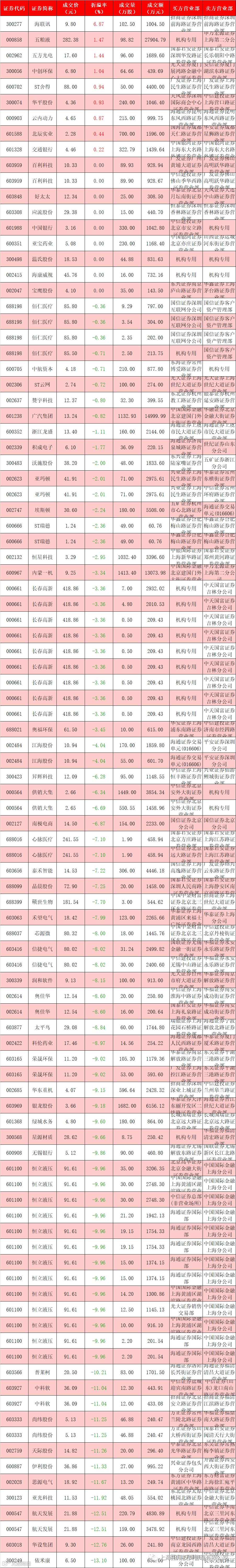 I 每日大宗交易数据统计