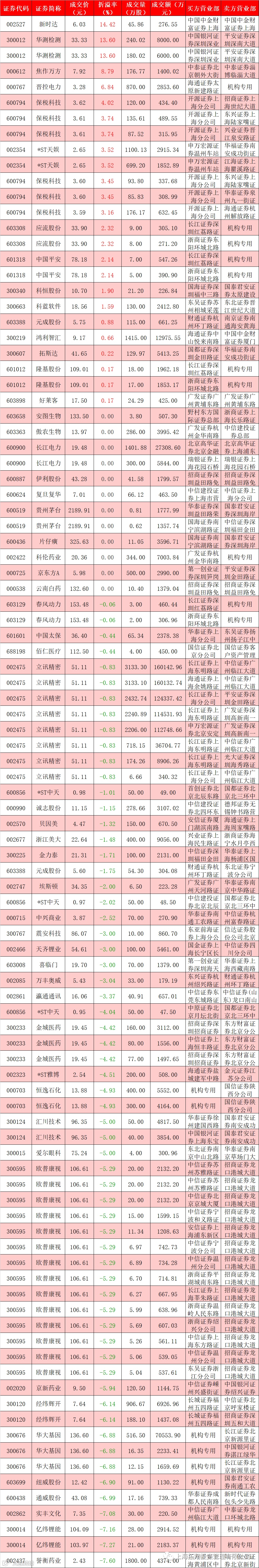 I 每日大宗交易数据统计