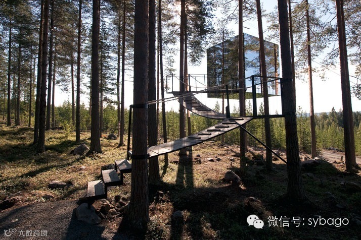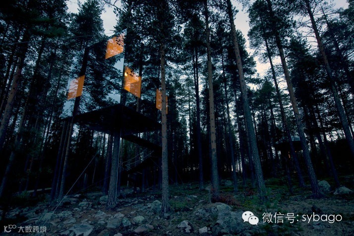 (树屋酒店)却显得不同寻常。这是一家在树上建造的袖珍酒店,坐落在瑞典北部的一个小镇Harads,一个几乎靠近北极圈,仅拥有600多人口的小镇,毫无疑问,这家树屋酒店已经成为当地著名的旅游景点了。