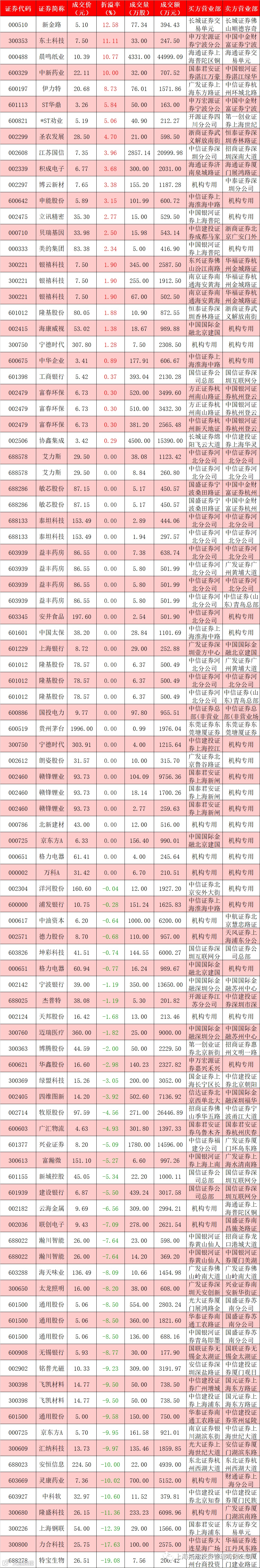 I 每日大宗交易数据统计