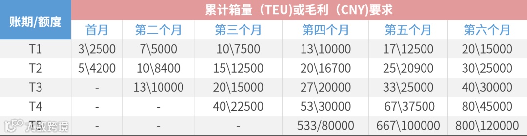 *注:表格中的“-”表示该帐期首次不可申请。平均累计月箱量、毛利的要求将根据市场情况做相应的调整,调整的方案将及时对外公布。