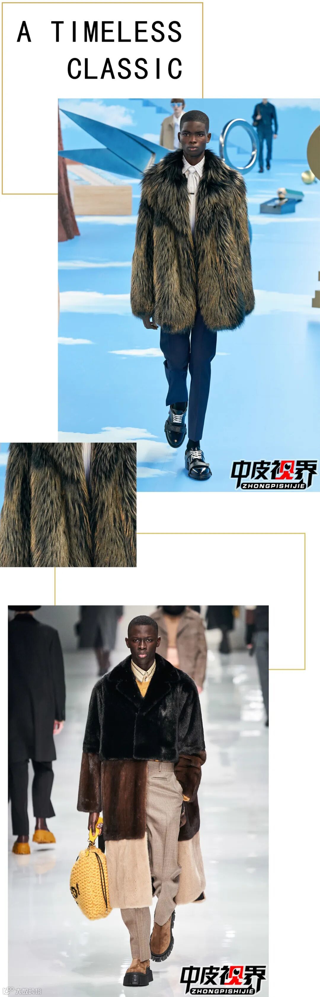 多场合活跃和快节奏生活使男装市场逐渐向年轻化转变,合身舒适、经典实用、自由切换场景模式成为关键。因此2020/21男装皮草流行趋势,设计师在延续经典廓形的基础上精简再造,传达轻松愉悦且与时俱进的态度,打造新一季的男装皮草风尚。