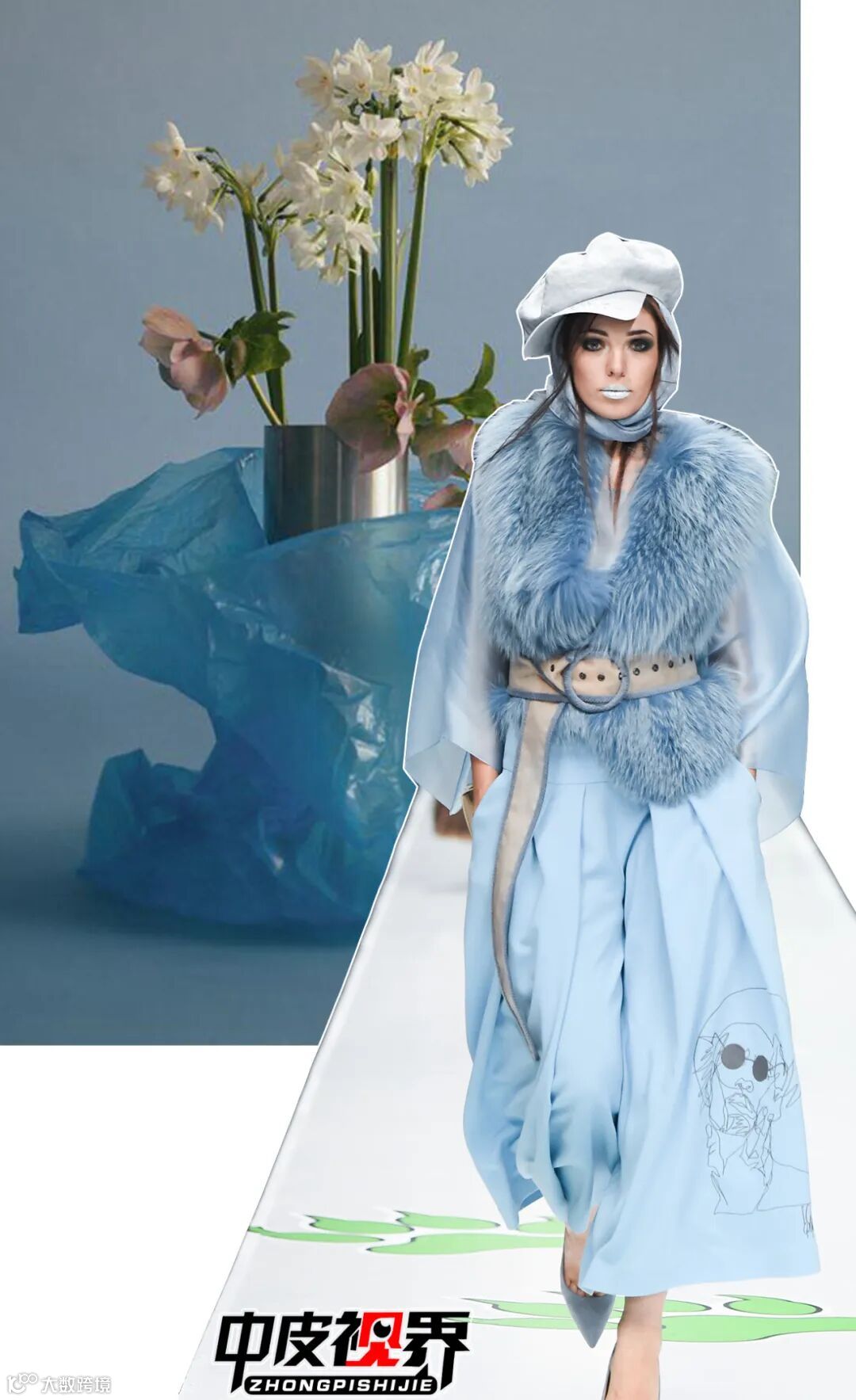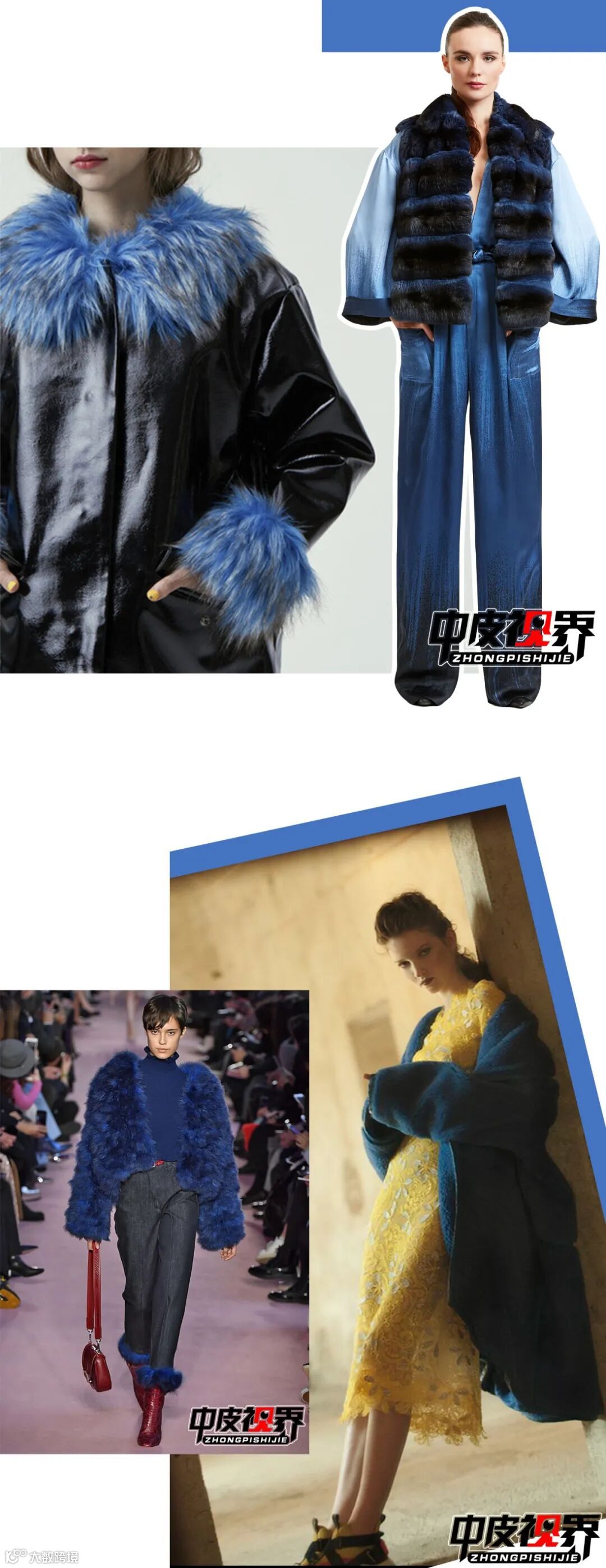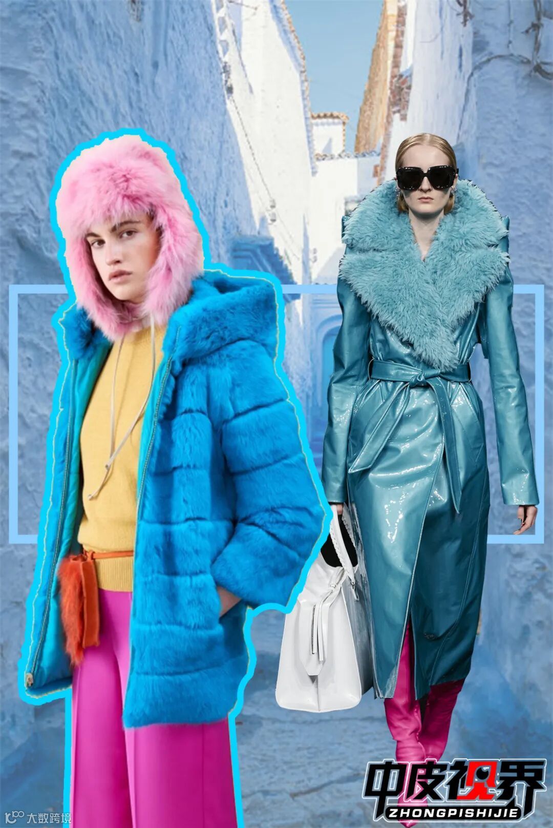在幻境趋势概念的影响下,消费者将持续探索超脱现实的数字世界,这一趋势推动了智能蓝等高饱和色彩加速发展。想要打造个性装扮的皮衣皮草,智能蓝绝对是最佳之选。