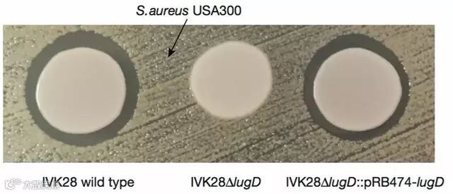 路邓葡萄球菌及突变型对MRSA的抑制作用。图片来源:Nature