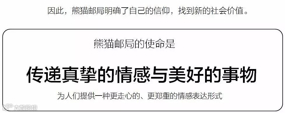 随着规模的扩大,熊猫邮局希望能够走出成都,走向全国。而此时“游成都 邮世界”这一城市价值,难以在成都以外的城市立足。 因此,我们首先从品牌信仰出发,即重新思考熊猫邮局带给人们的“社会价值”。