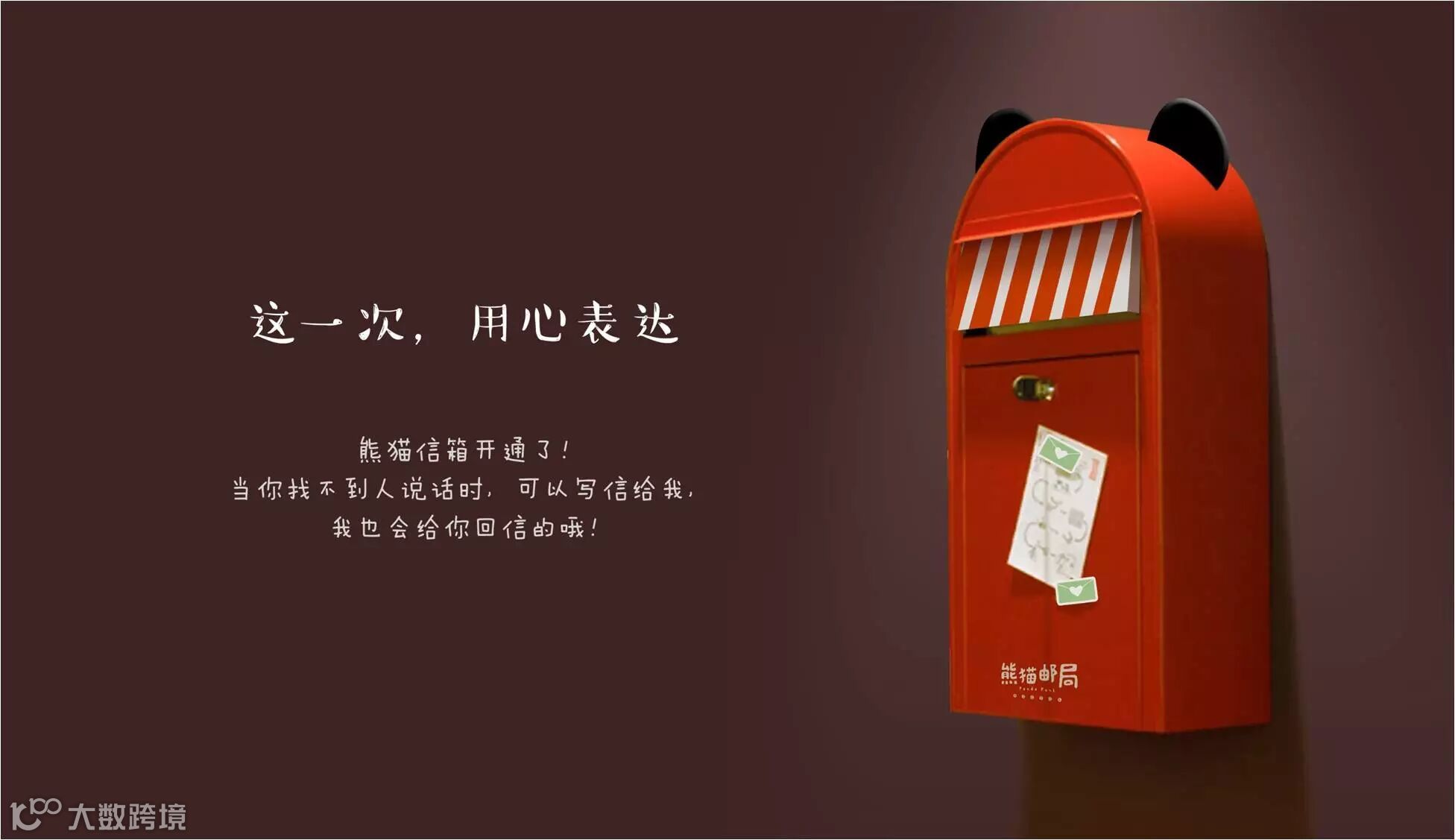 整个熊猫形象以憨态可掬而又柔软的熊猫造型为主体,再加上邮递员的帽子(职业)、围巾(温暖)点缀,突出了邮局这一特质。