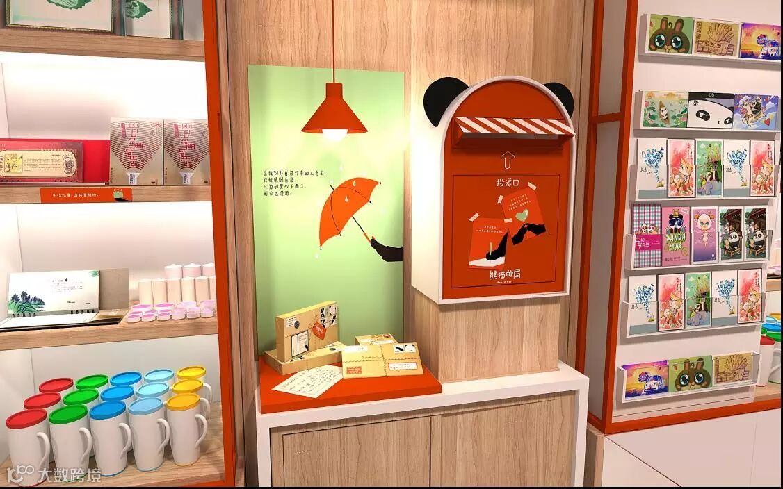 熊猫邮局的空间整个色调偏年轻和活泼,一改往日里人们对于邮局根深蒂固的形象,并且设有写给未来的自己时光信箱、邮箱等邮局的专用物品。