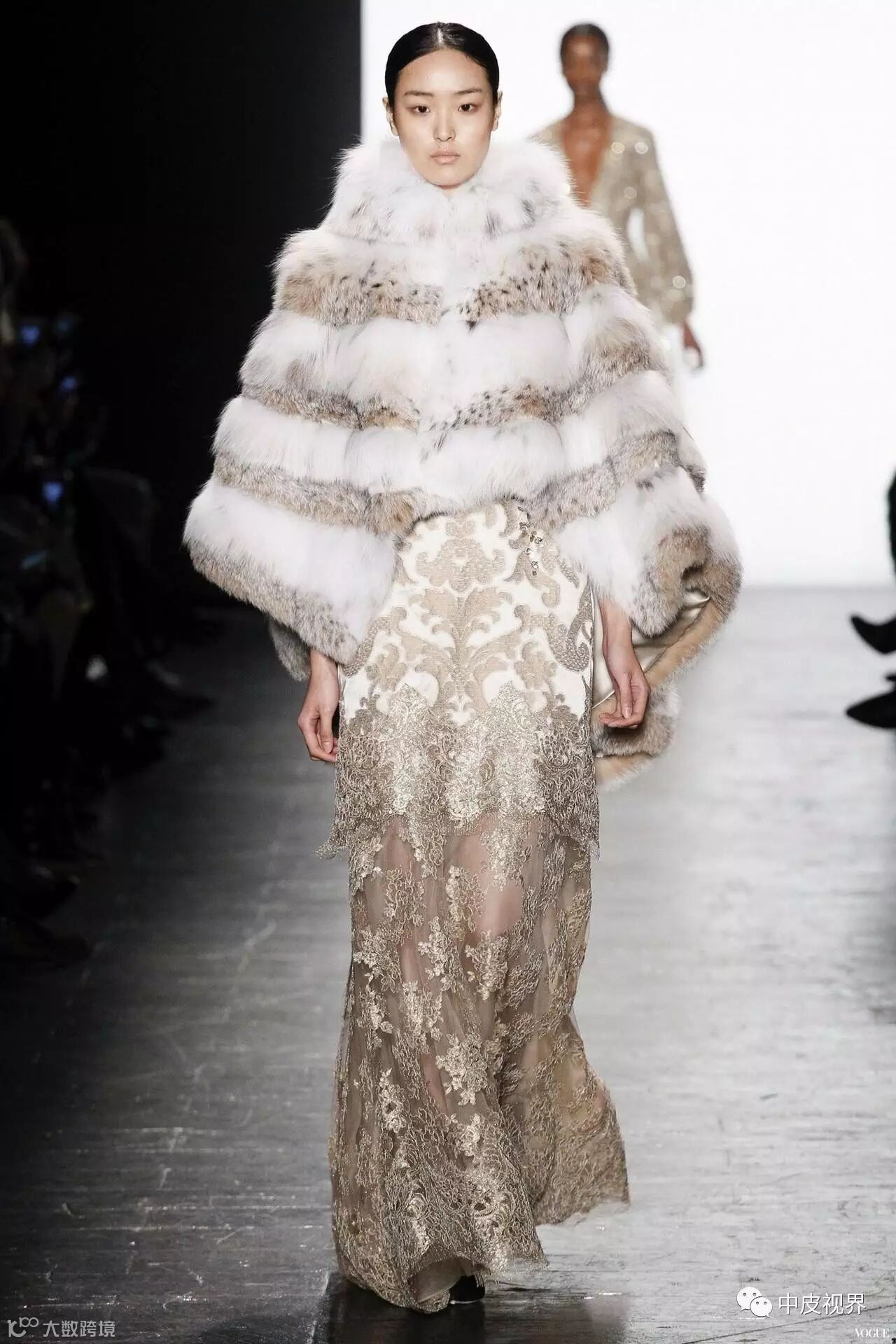 恰到好处的拿捏服装局部构成要素的大小,多少,强弱,轻重,虚实,长短,快慢,曲直的变化,让皮草女装产生韵律美和节奏美。