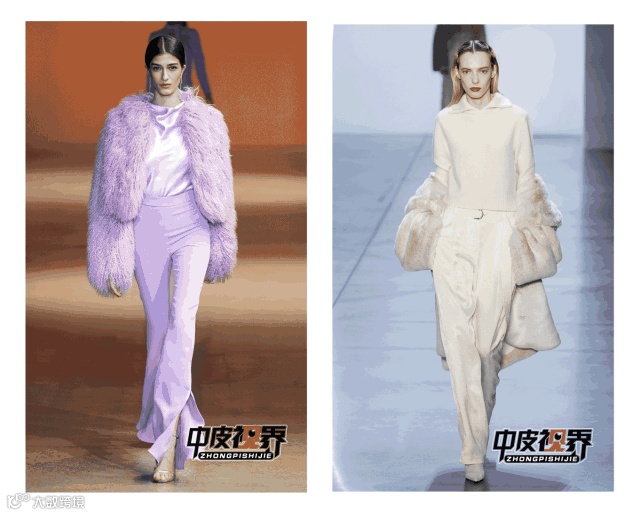 设计师在皮草用色方面做了新的调制,用色彩重组的方式将两种或两种以上的色彩进行搭配,为女装皮草增添浪漫情趣。