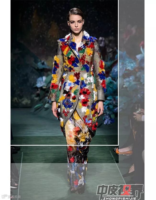 无论是混杂多彩的通俗艺术花卉,还是斑点细小的花朵亦或是五颜六色的彩绘,都强调个性化的表达。皮草跟“花样”的结合,融入唯美浪漫的风趣,自带一种清新温柔的感觉,看似简约,却更加丰富了细节。